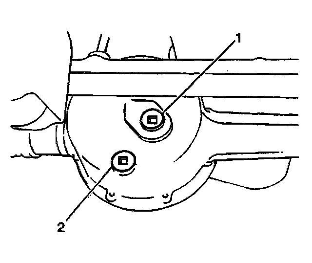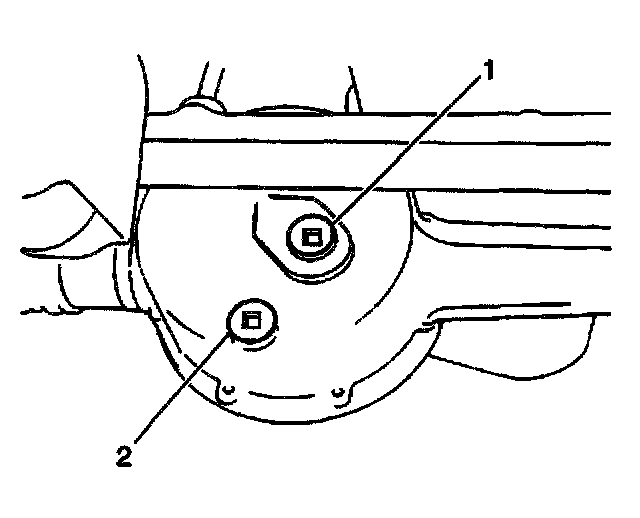 6. Install the front axle housing drain plug (2) into the front axle housing.
