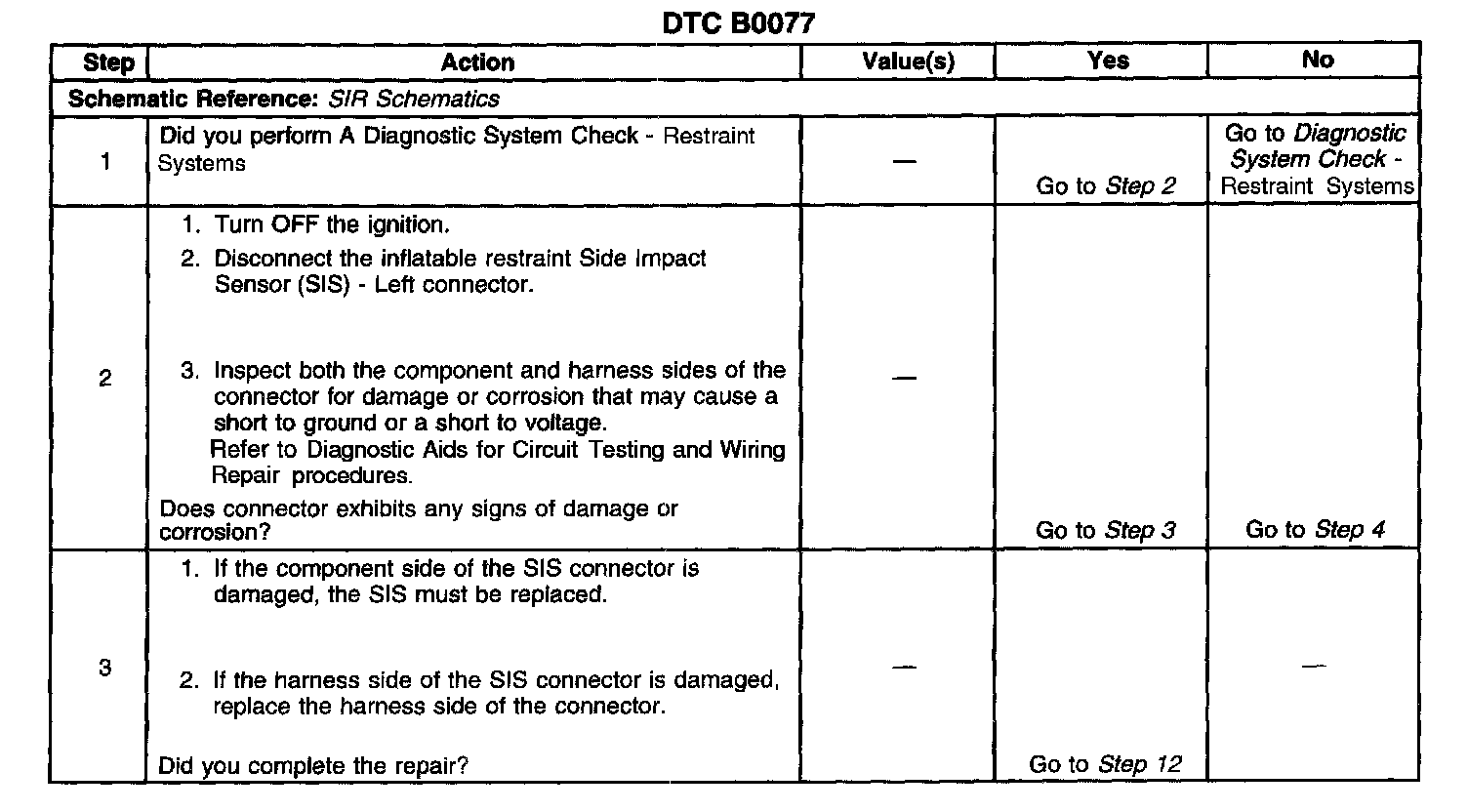 the inflatable restraint side impact sensor (SIS) loop with the power on.