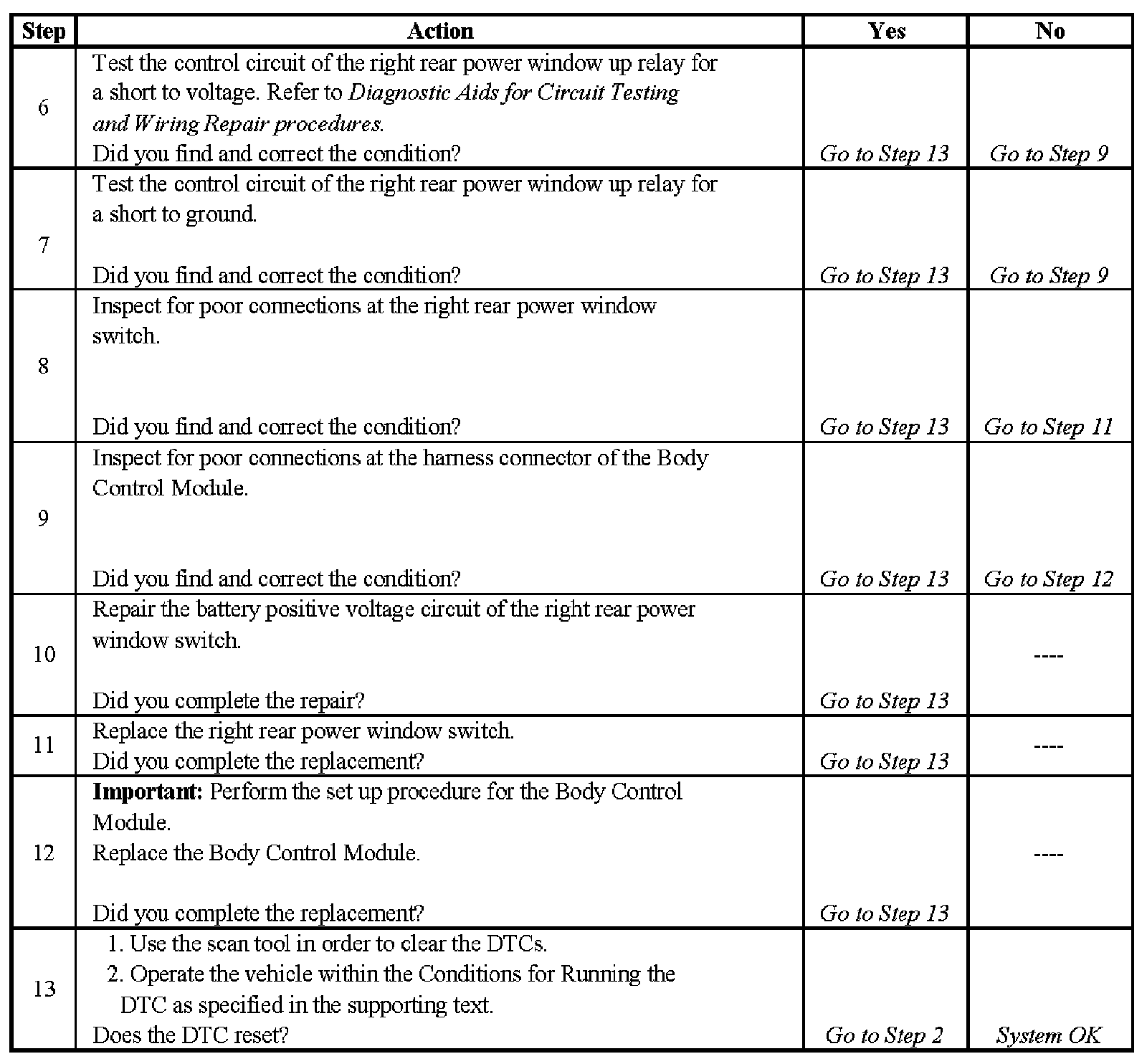 ^ When the BCM has grounded the right rear power window up relay control circuit and the control circuit is shorted to battery positive voltage.