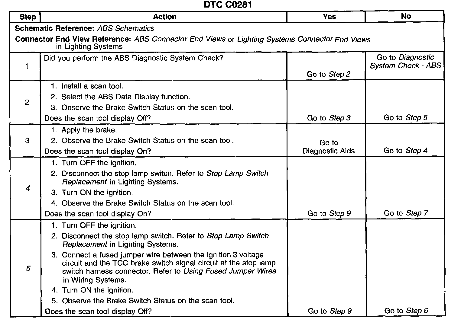 5. This step tests for an open stoplamp switch.