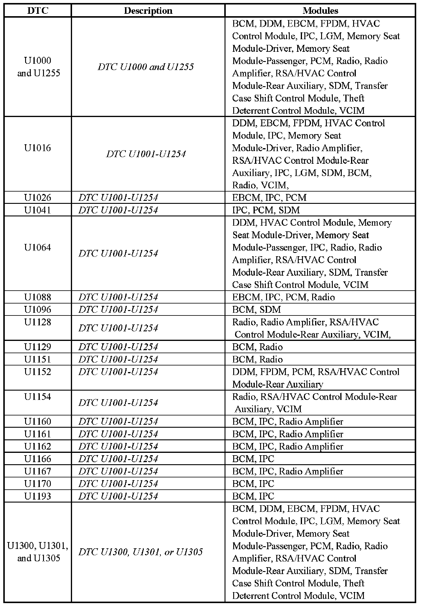 Diagnostic Trouble Code Descriptions