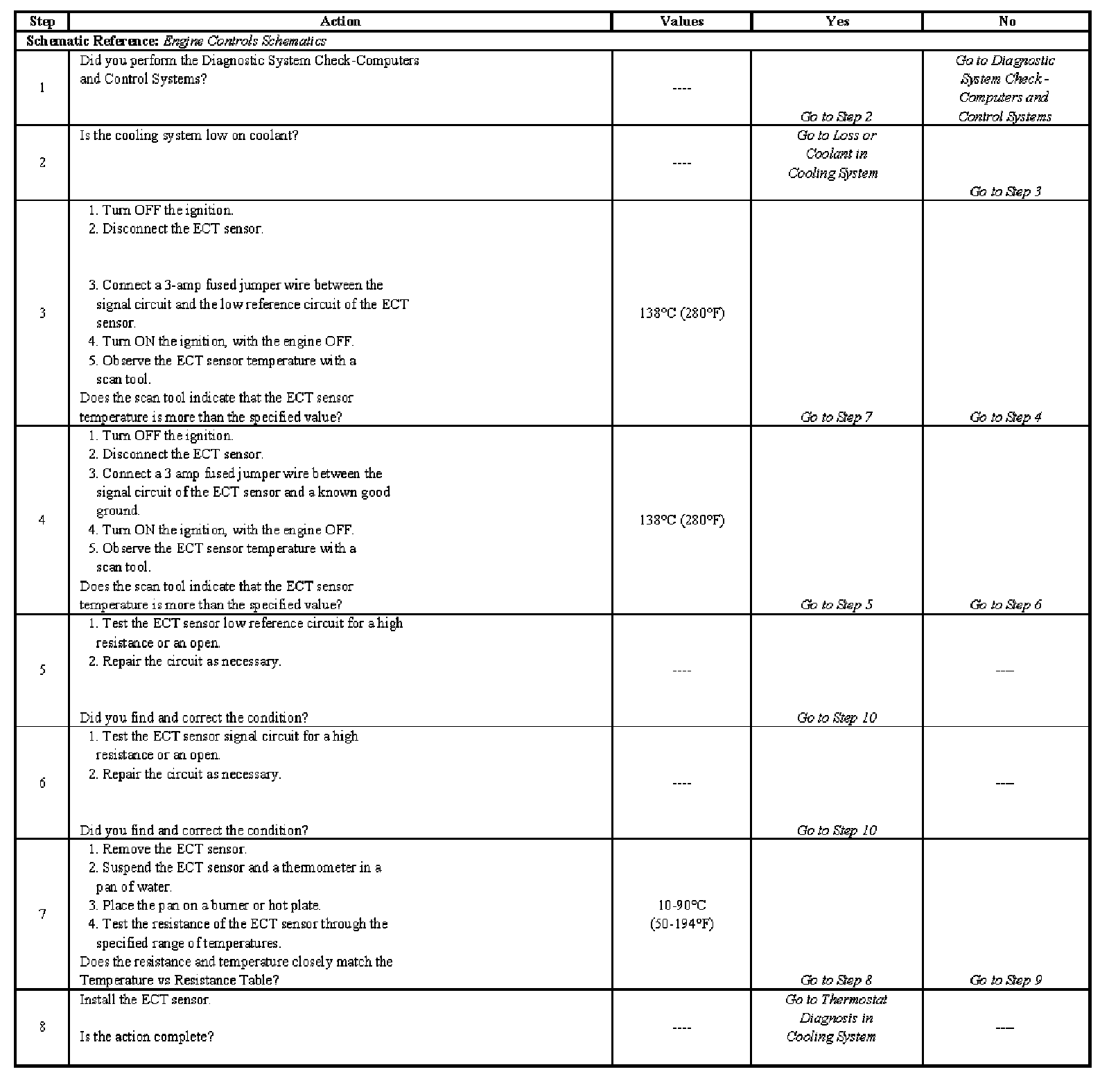 3. This step tests for excessive resistance in the ECT circuit.