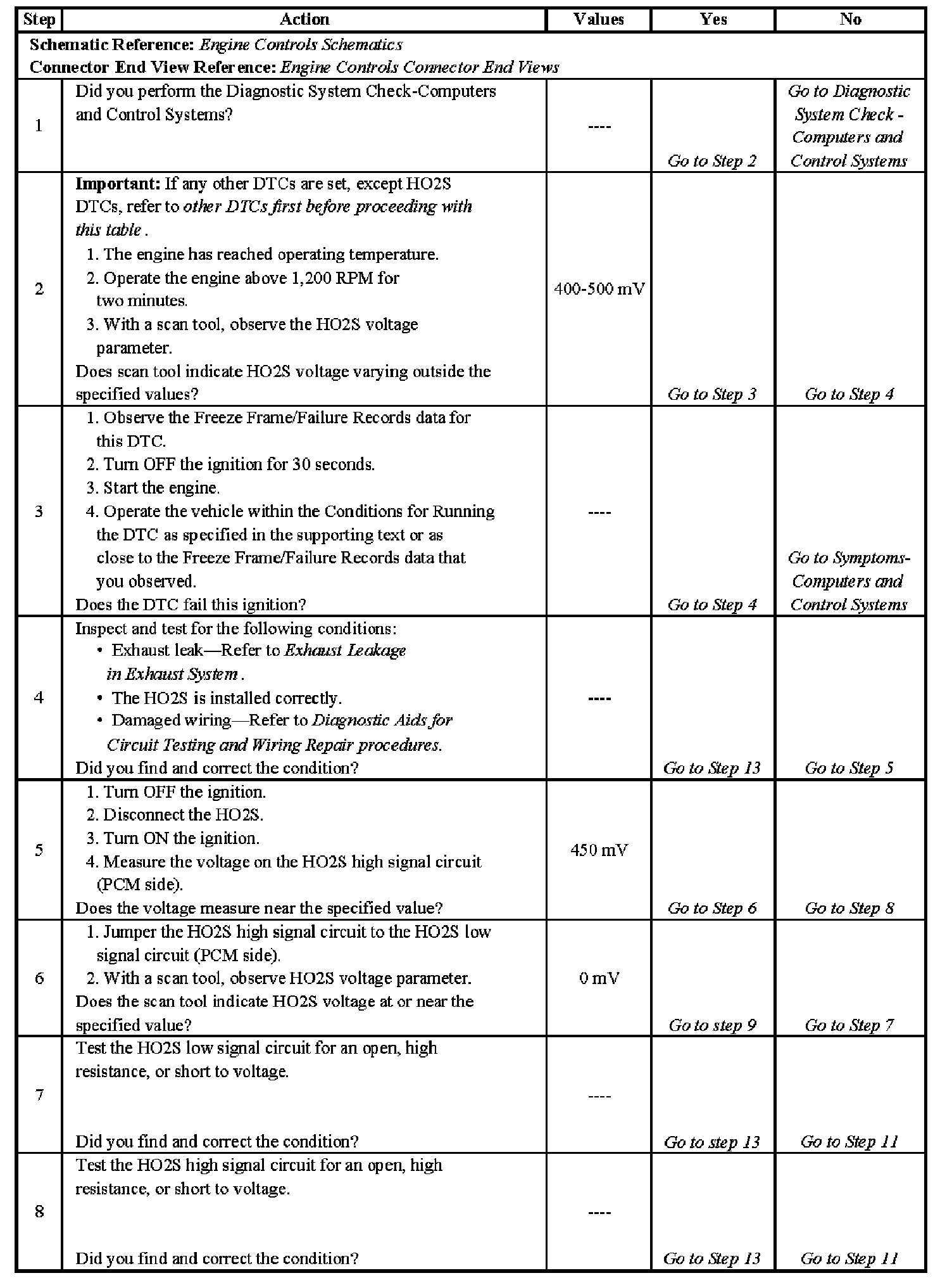 DTC P0133 - Steps 1-8: