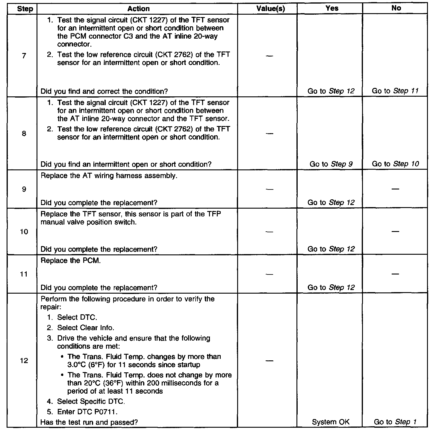 When the PCM detects one of the following unusual conditions, then DTC P0711 sets.