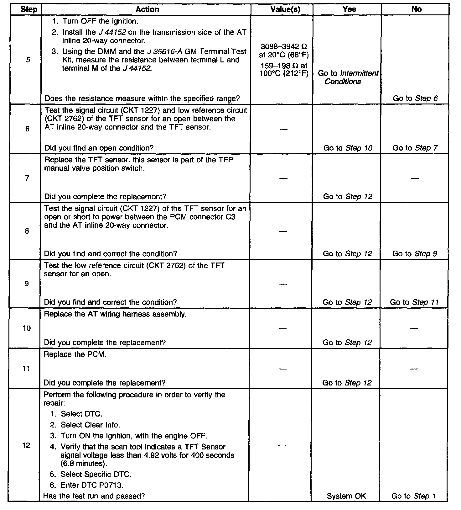 3. This step verifies a condition in the TFT sensor circuit.