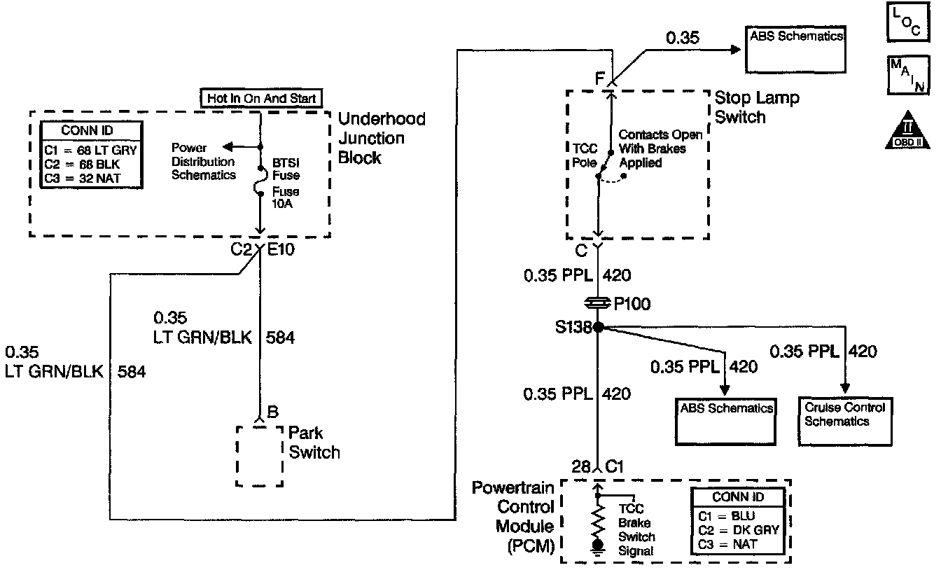 When the PCM detects a closed brake switch circuit, 12 volts, high input, during decelerations, then DTC P0724 sets. DTC P0724 is a type C DTC.