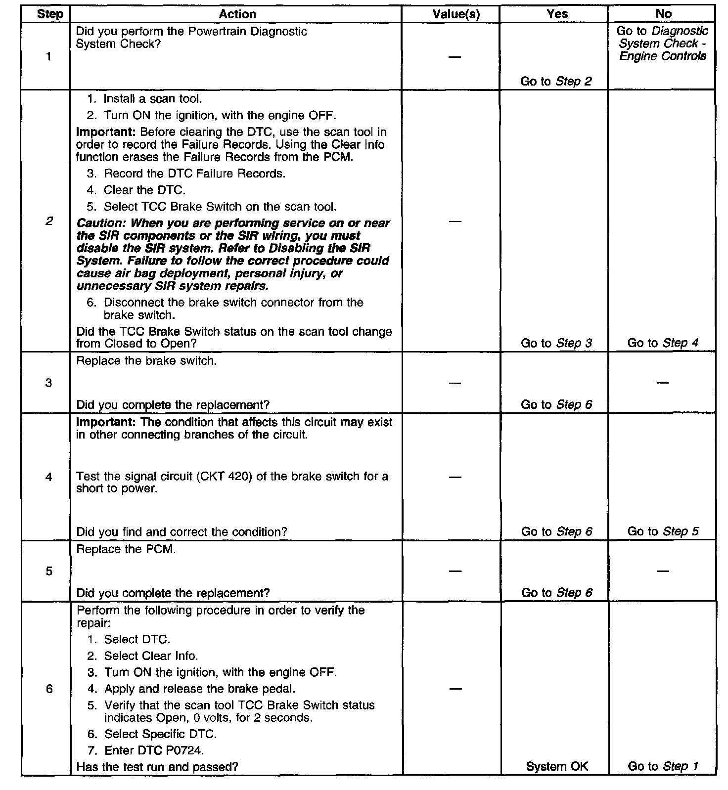 Inspect for ABS DTCs. A faulty ABS condition may contribute to setting DTC P0724.