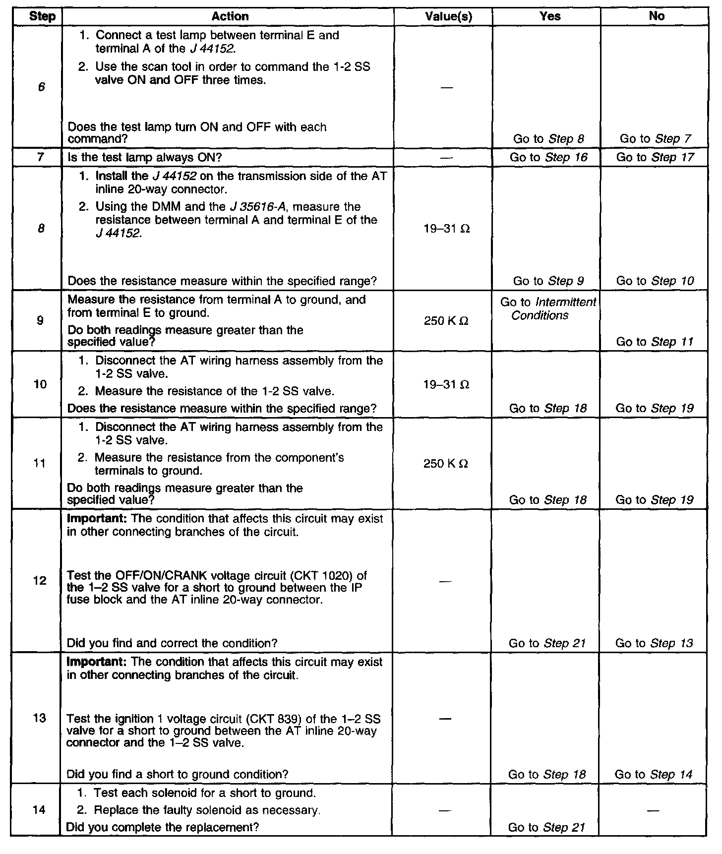 8. This step measures the resistance of the AT wiring harness assembly and of the 1-2 SS valve.