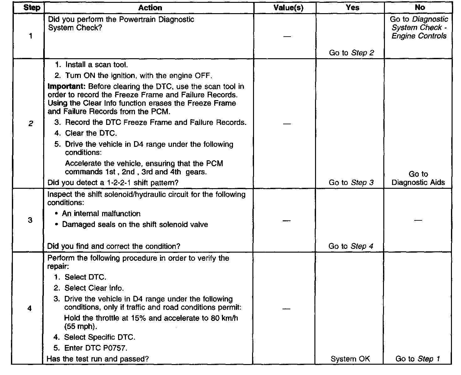^ The PCM stores DTC P0757 in PCM history.