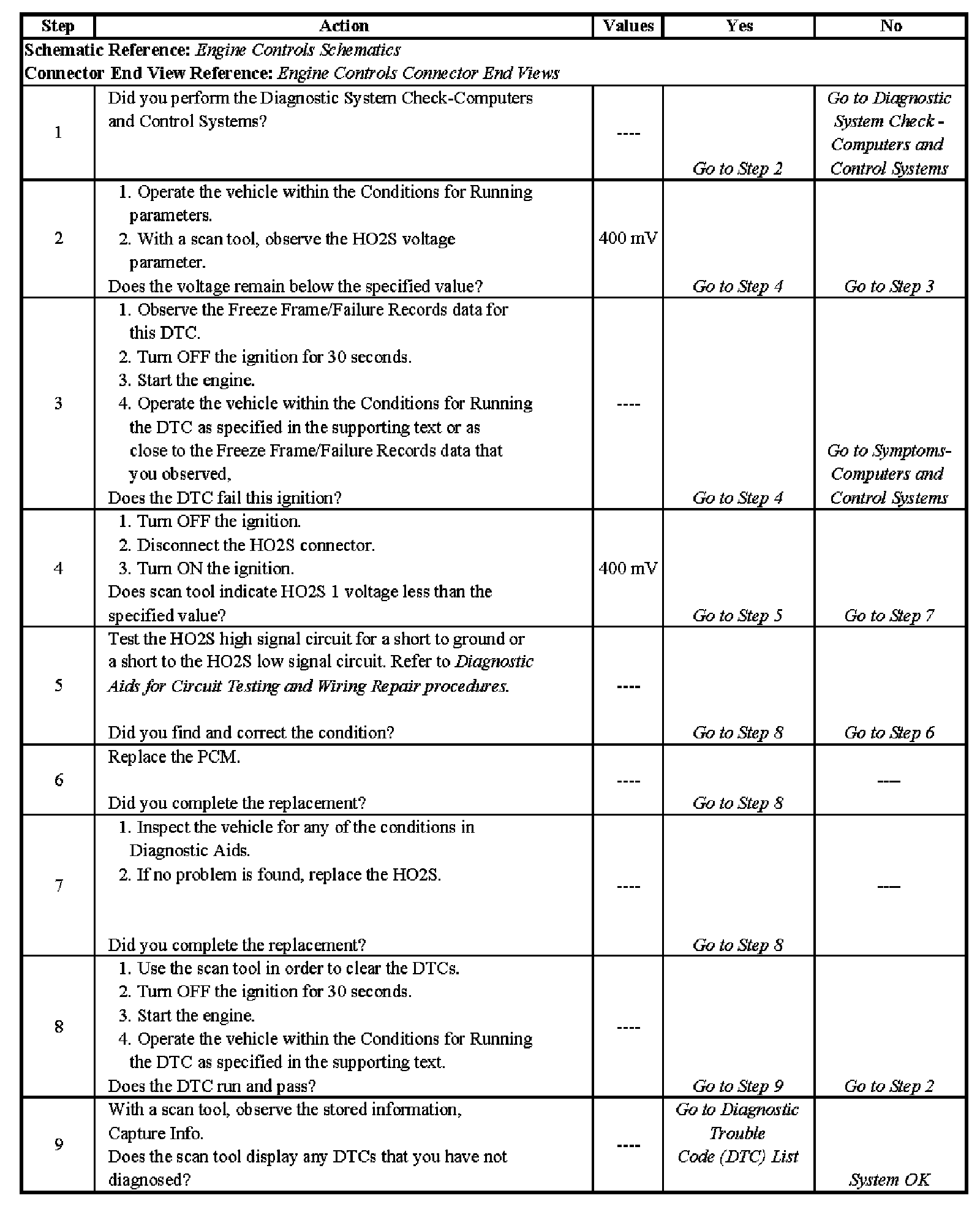 ^ A poor electrical connection or a damaged harness-Inspect the harness for a short to ground in the HO2S 2 high signal circuit. Ensure that the HO2S 2 pigtail is not contacting the exhaust.