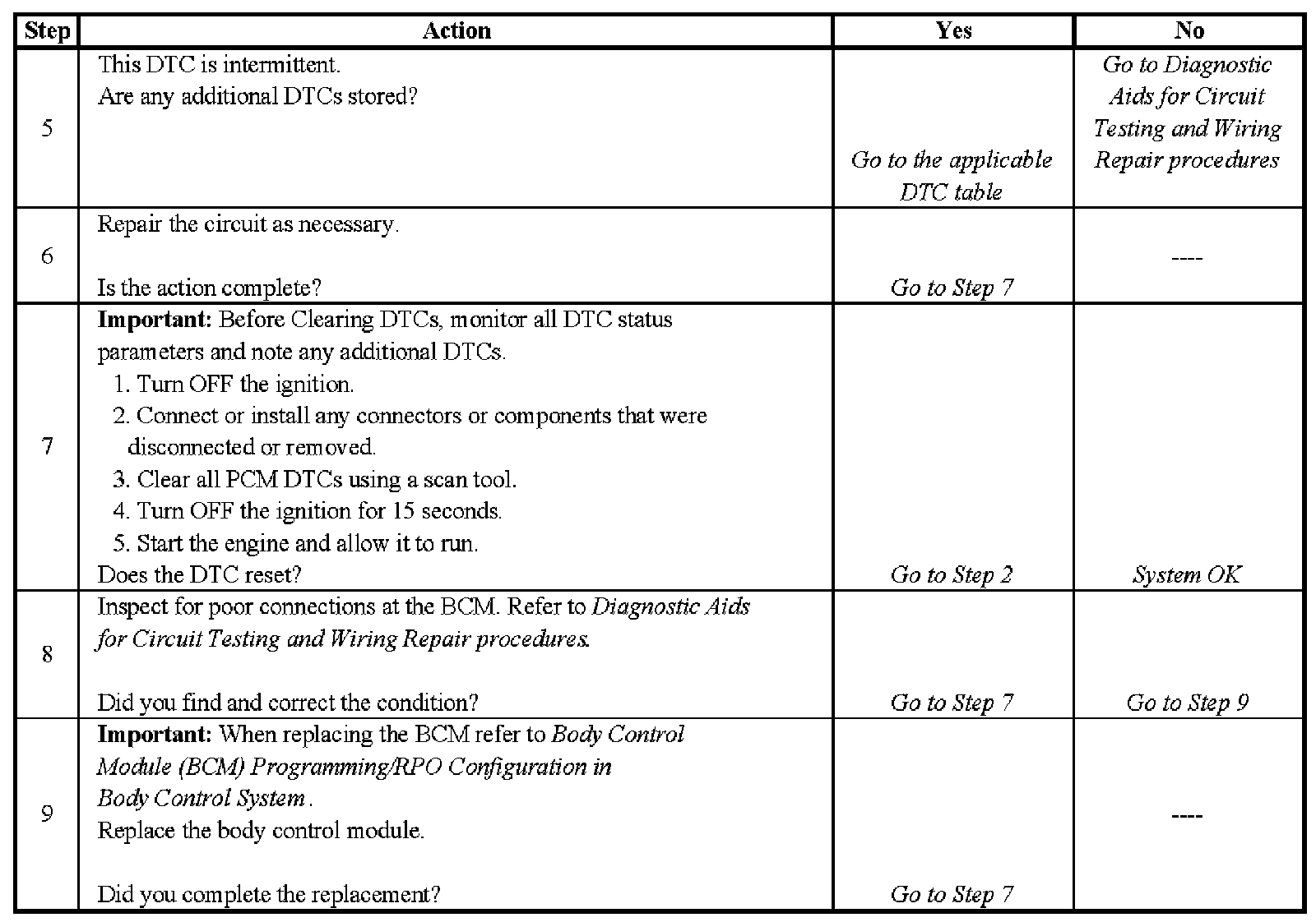 ^ Inspect all related wiring and connections including the powertrain control module (PCM) and body control module (BCM) connections. These may cause an intermittent malfunction.