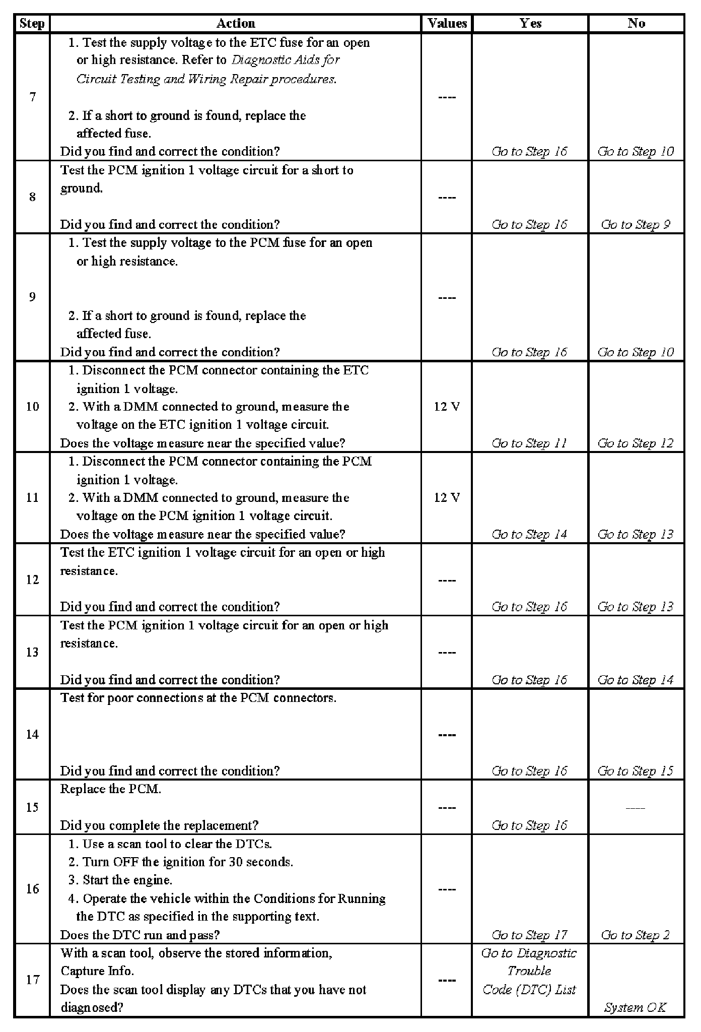 CIRCUIT DESCRIPTIONThe electronic throttle control (ETC) system uses an ignition voltage supply separate from the powertrain control module (PCM) supply. If the PCM detects a voltage difference between the two circuits, this diagnostic trouble code (DTC) will set.