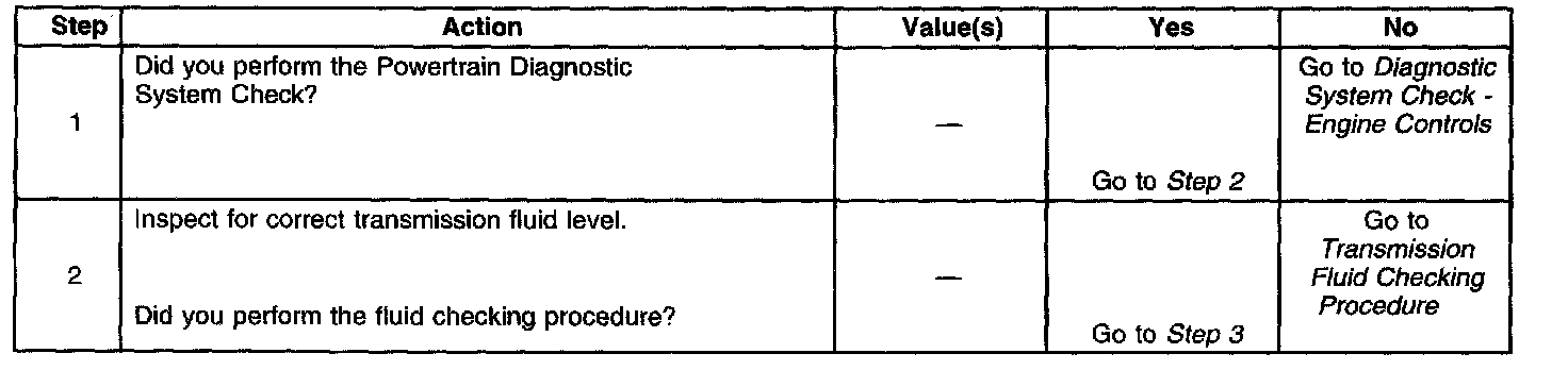 ^ Refer to the Transmission Fluid Pressure (TFP) Manual Valve Position Switch Logic table for the normal range signals and the invalid combinations. On the table, LOW is 0 volts, HI is ignition voltage.