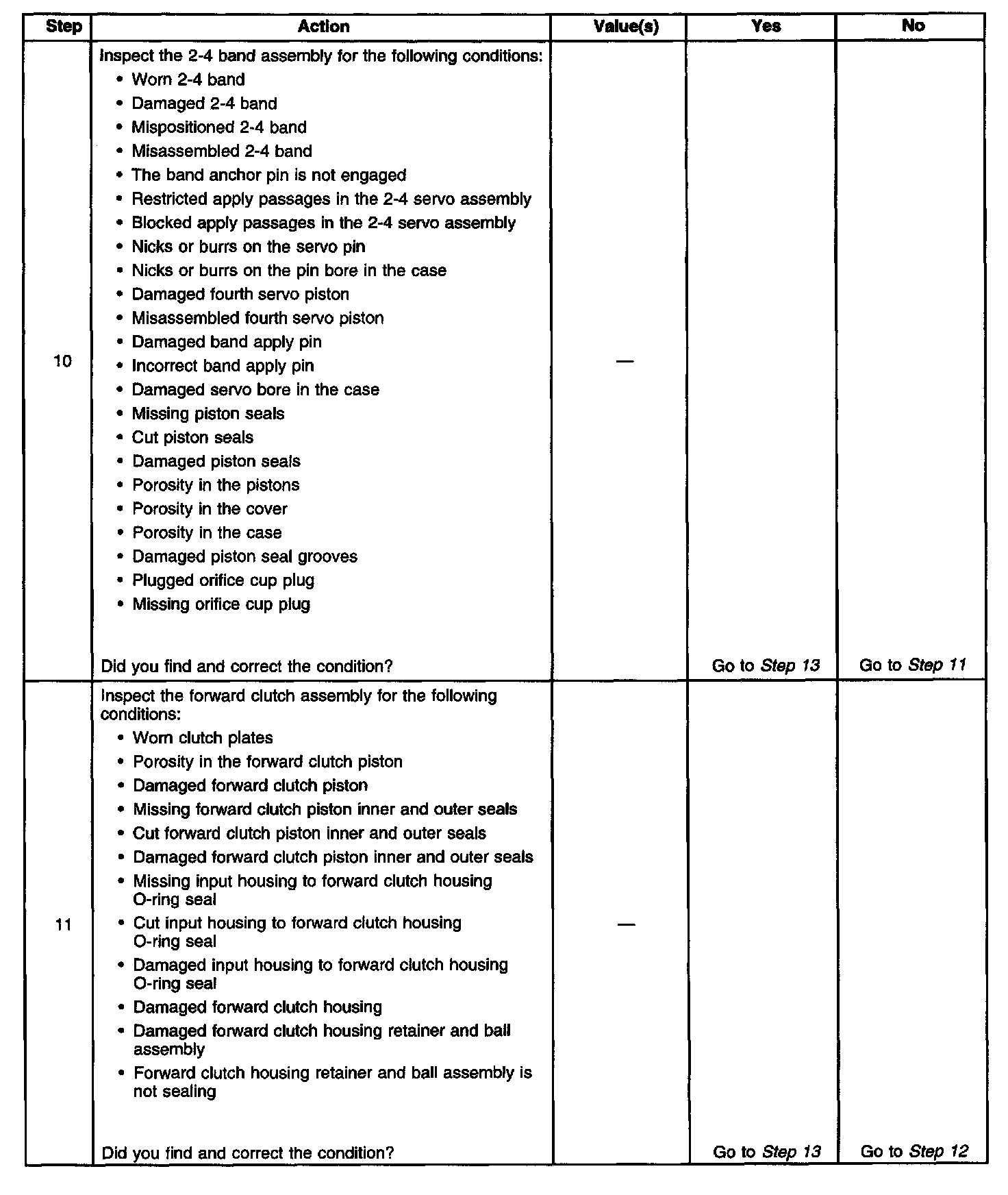 The numbers below refer to the step numbers on the diagnostic table.