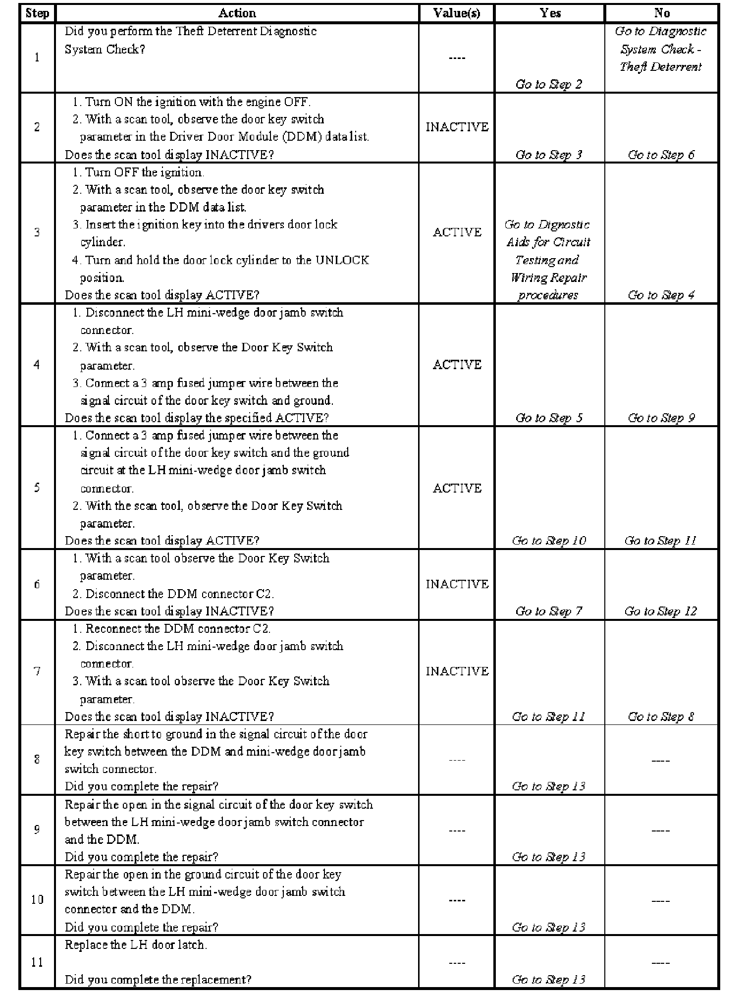 Content Theft Deterrent (CTD) Does Not Disarm With Key Lock - Steps 1-11: