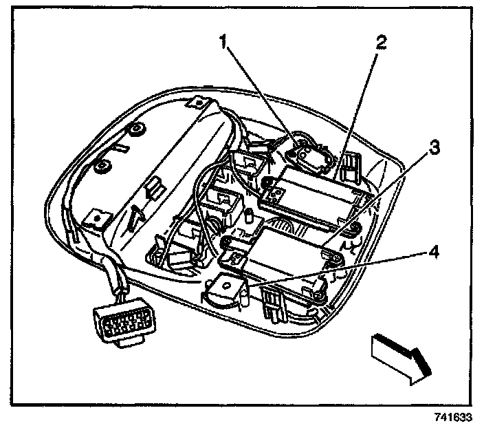2. Disconnect the microphone electrical connector to the OnStar(R) microphone (1).