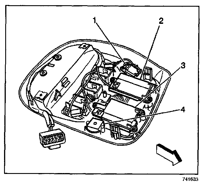 4. Connect the electrical connector to the OnStar(R) microphone (1).