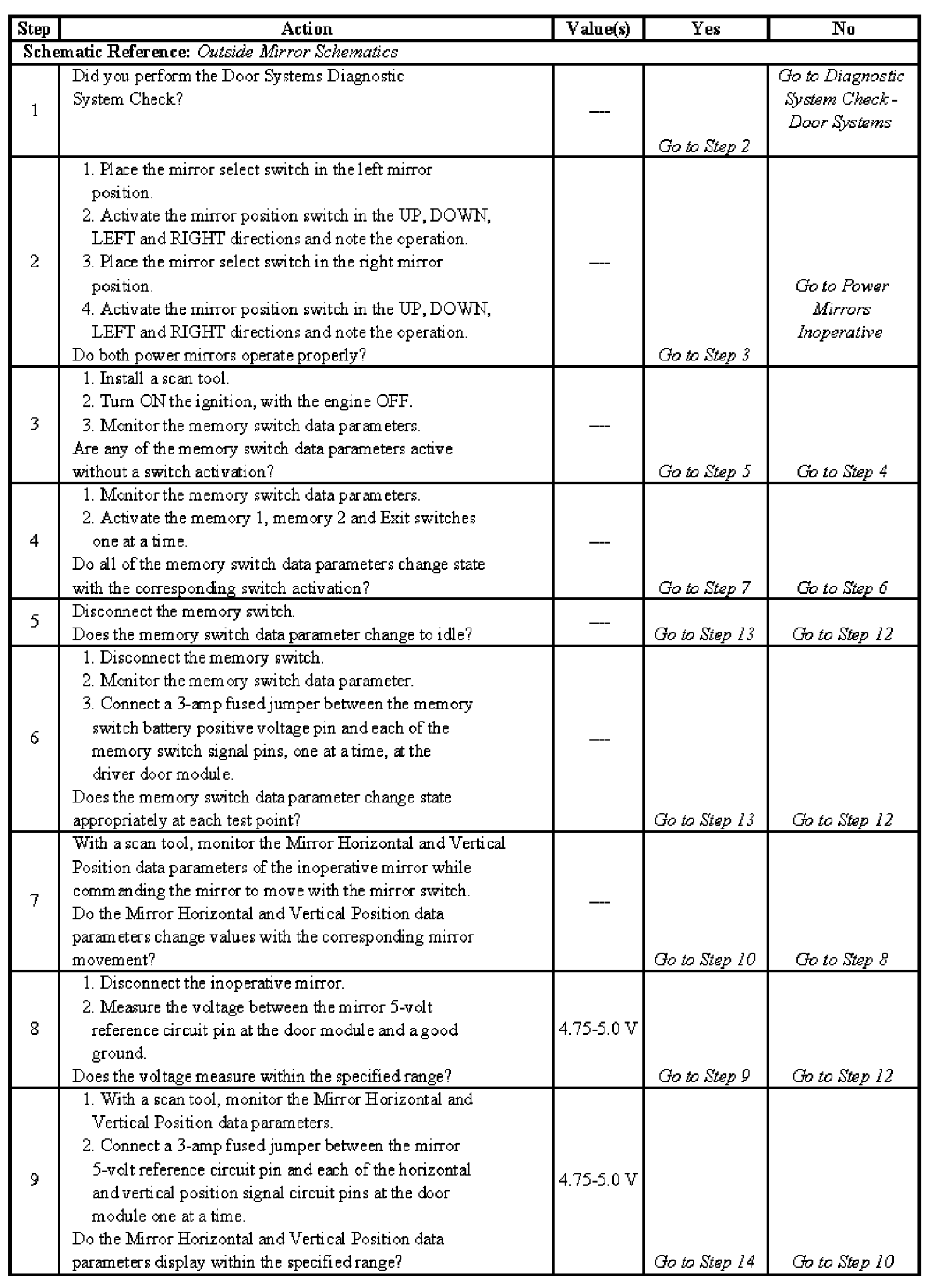 Power Mirrors - Memory Functions Inoperative - Steps 1-9: