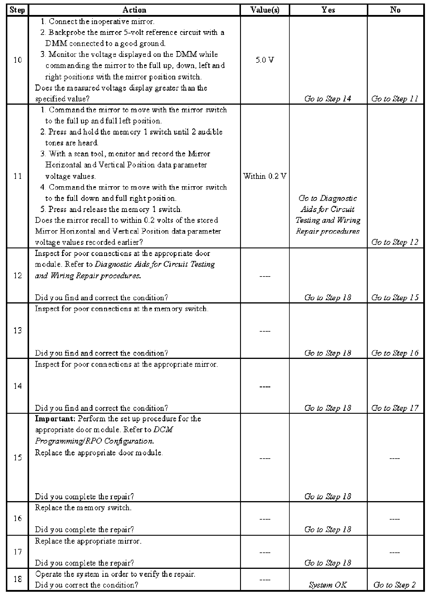 Power Mirrors - Memory Functions Inoperative - Steps 10-18: