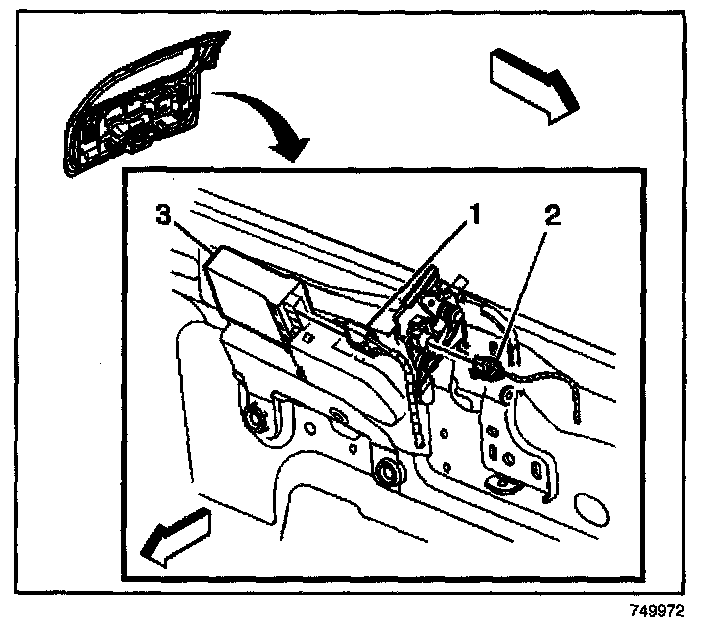 11. Disconnect the 2 liftgate power lock assembly connectors (1,3).