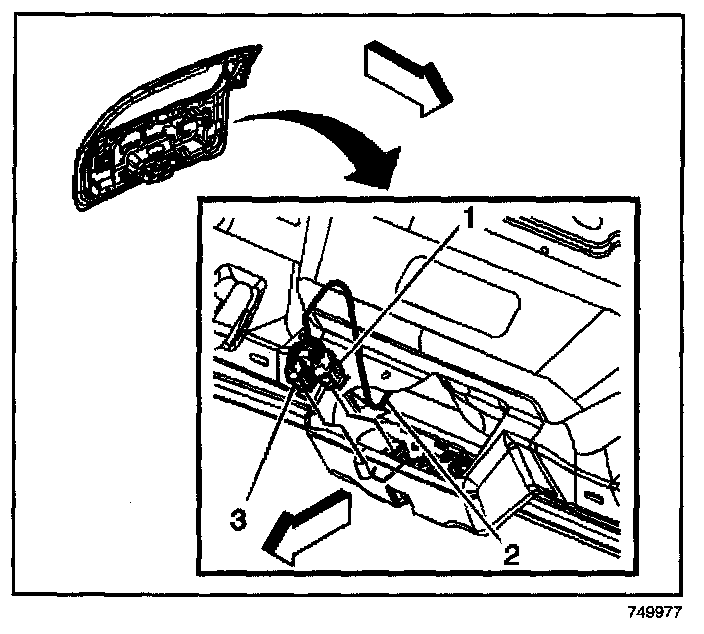 6. Connect the electrical connectors (3) from the liftgate module.