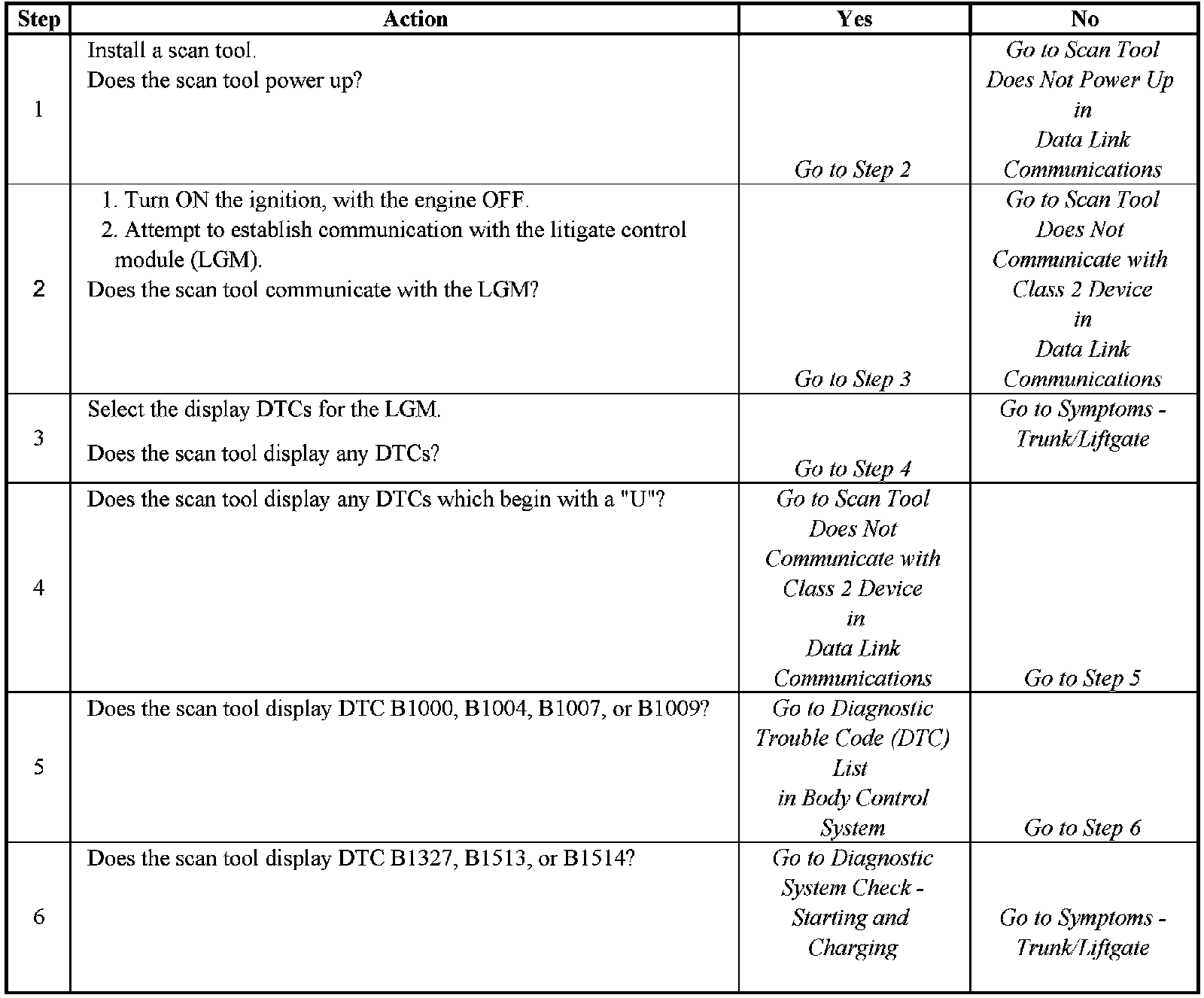 Diagnostic System Check - Body Rear End - Steps 1-6: