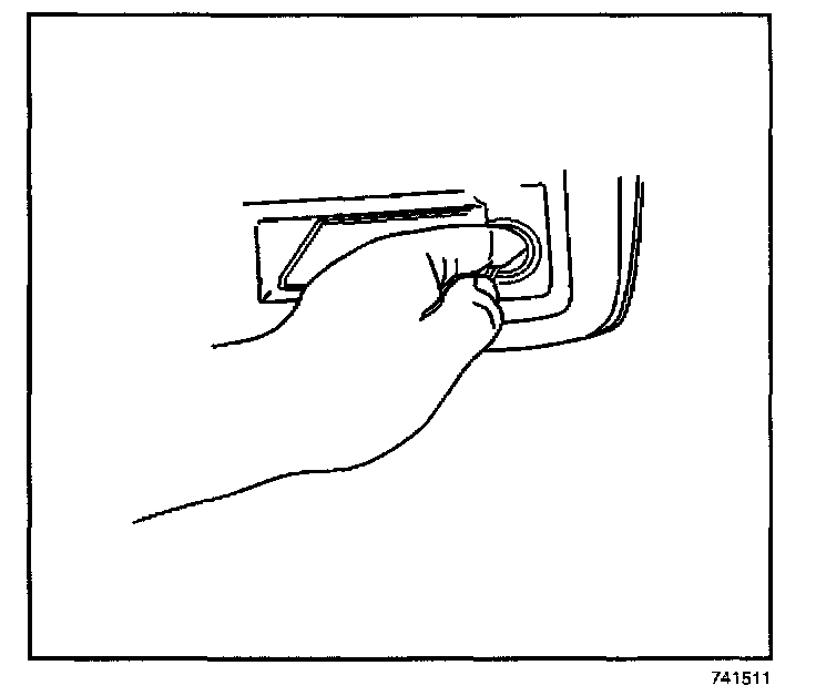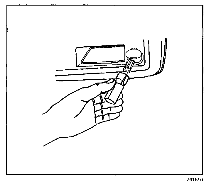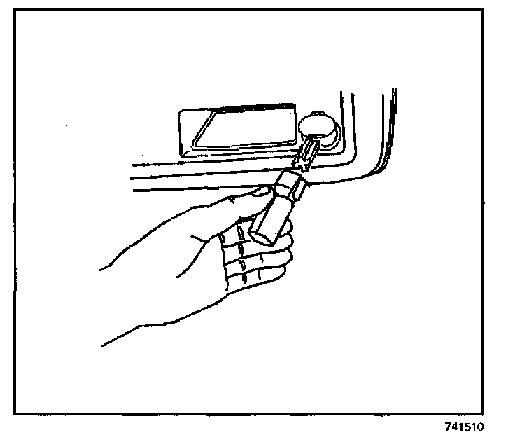 2. Remove the socket by placing one side of the "T" portion of the tool J 42059 into the socket and into the square window tab.