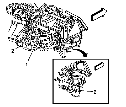 19. Disconnect the electrical connector (3) from the HVAC evaporator blower motor resister pack.