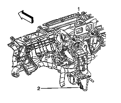 20. Disconnect the electrical connector (2) from the passenger temperature valve.