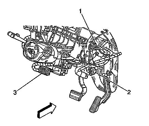 29. Remove the connector retaining bolt and disconnect the electrical connector (3) from the steering column.