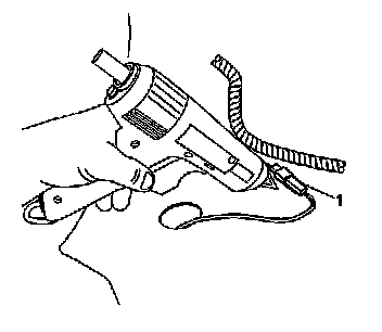 10. Reach above the headliner to access the electrical connector (1).
