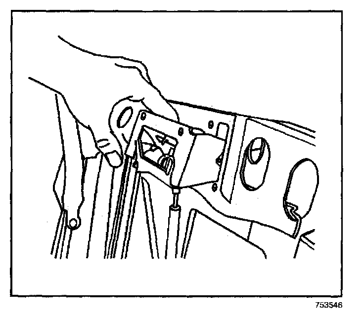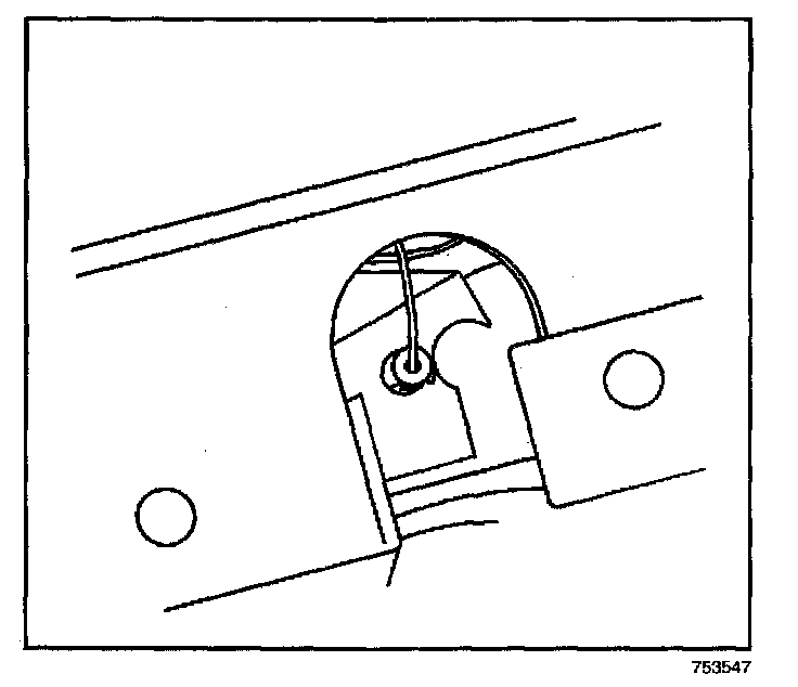 2. Install the release cable through the head restraint retractor assembly access hole and sliding the cable retainer into position.