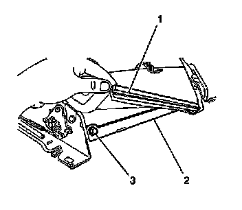 1. Unhook the seat back cushion extension panel strap (1) from the extension panel (2).