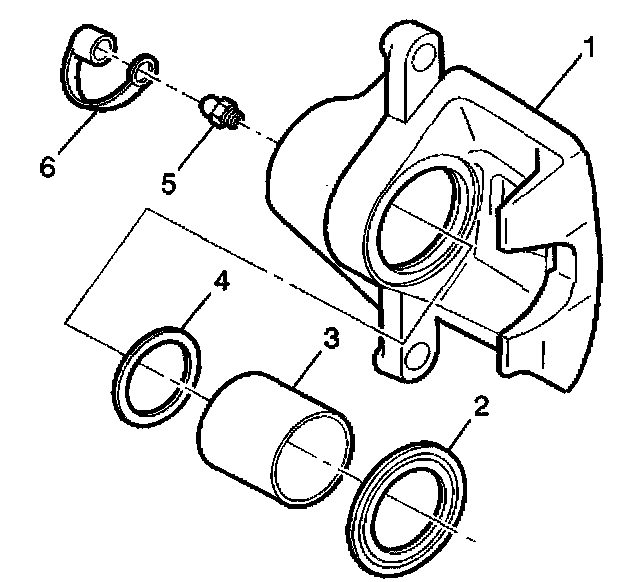 1. Inspect the brake caliper housing (1) for cracks, excess wear, and/or damage. If any of these conditions are present, the brake caliper requires replacement.