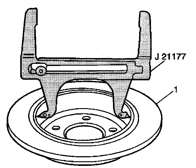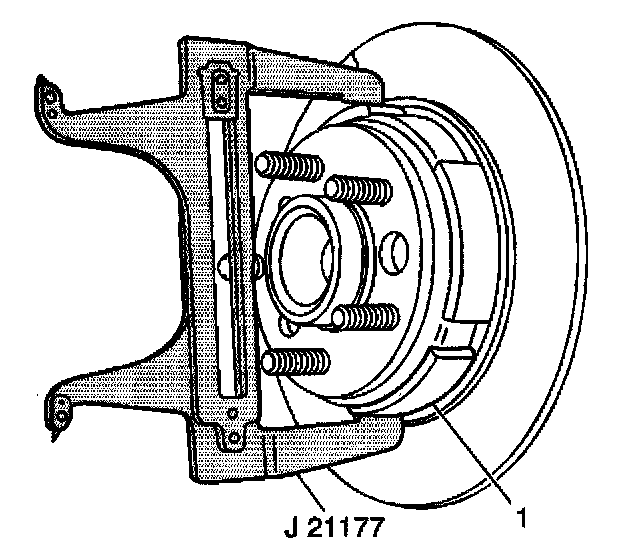 2. Adjust the J21177-A until it contacts the inside diameter of the rotor (1).