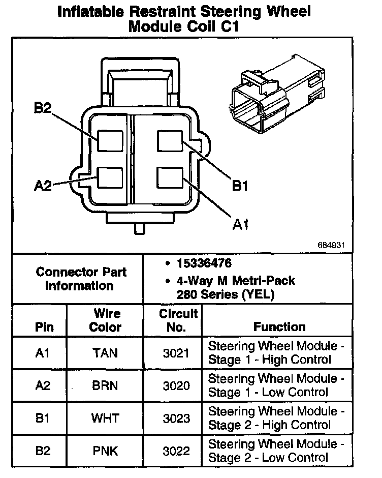 Inflatable Restraint Steering Wheel Module Coil C1: