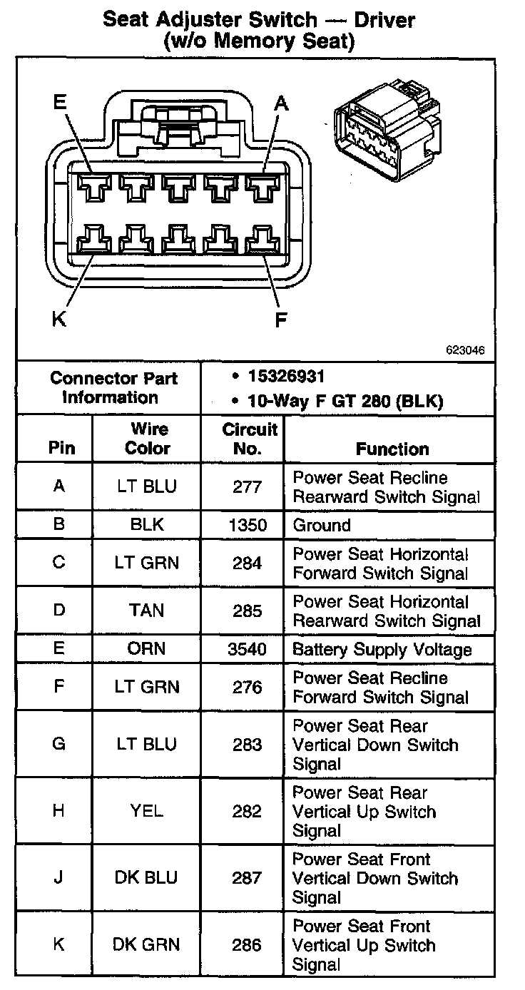 Seat Adjuster Switch - Driver (W/O Memory Seat):