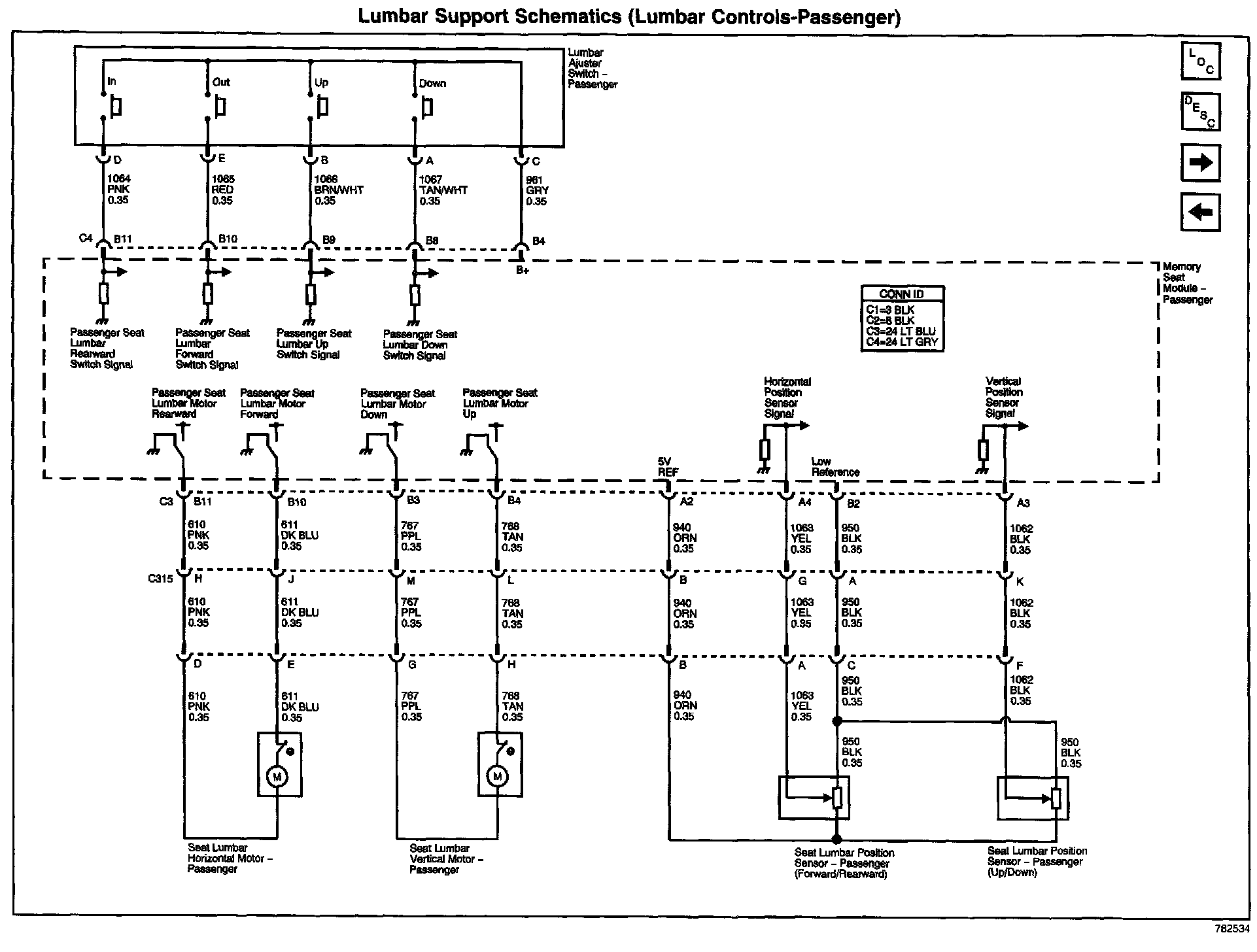 Lumber Support Schematics: Lumbar Controls - Passenger: