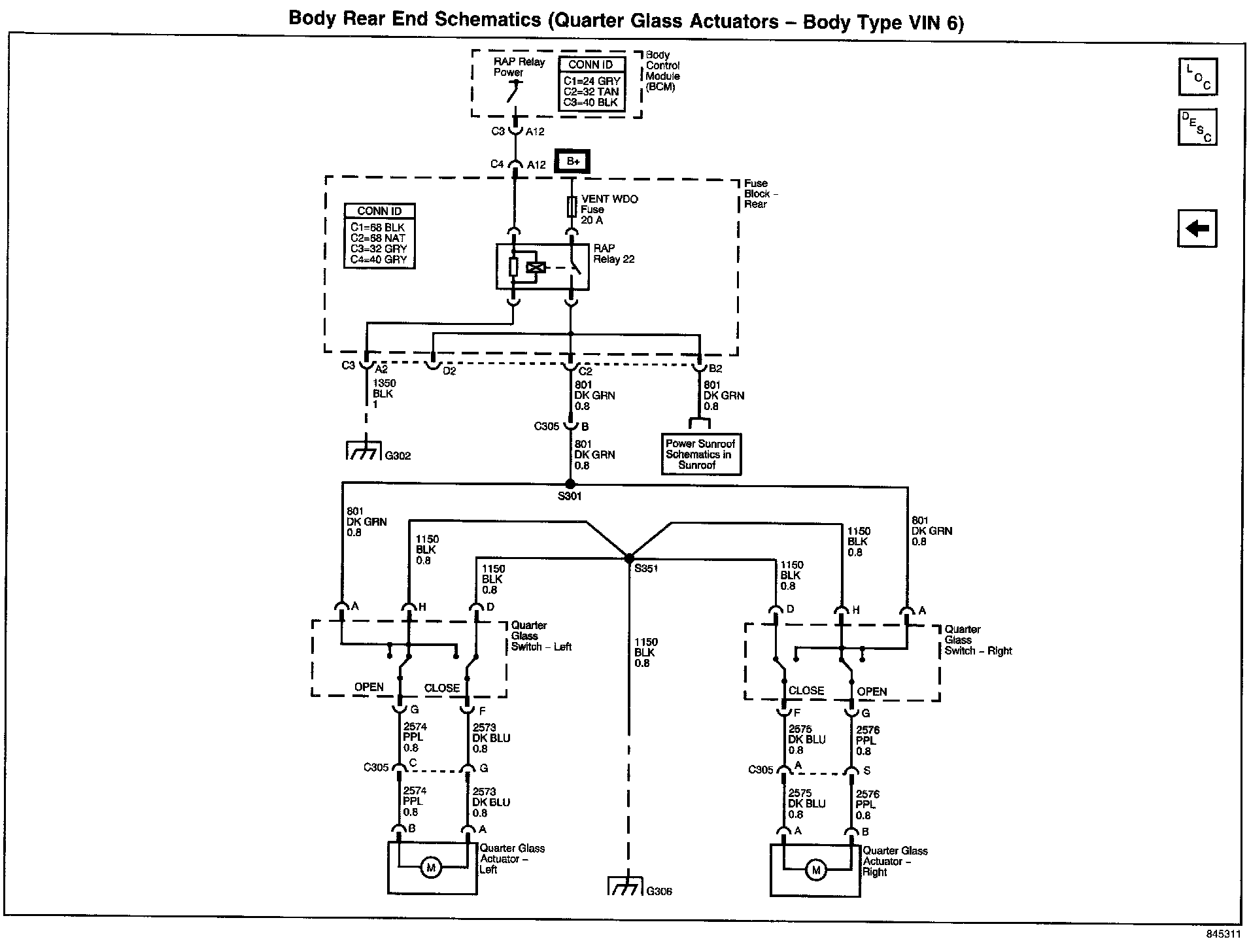 Body Rear End Schematics: Quarter Glass Actuators - Body Type VIN 6: