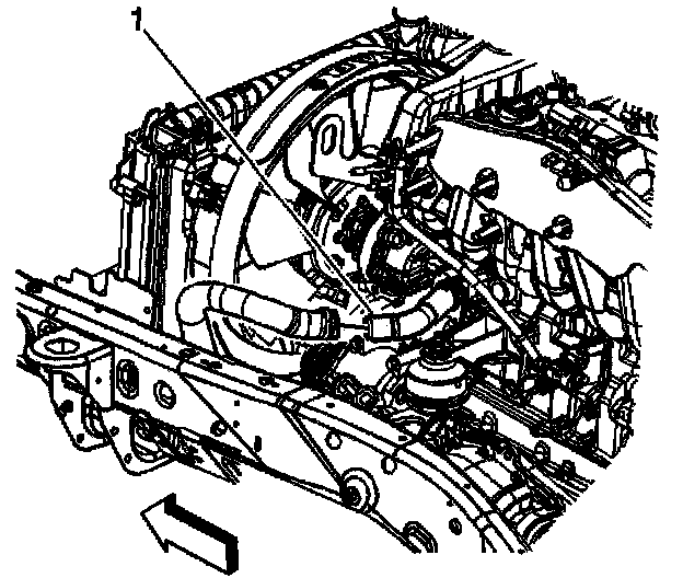 7. Remove the outlet radiator hose (1) from the radiator.