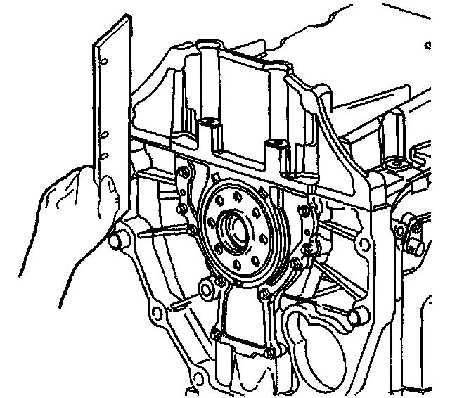4. Inspect the oil pan alignment. Use a straight edge on the back of the block and the oil pan transmission mounting surface.