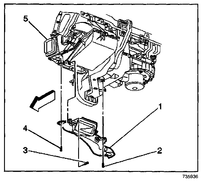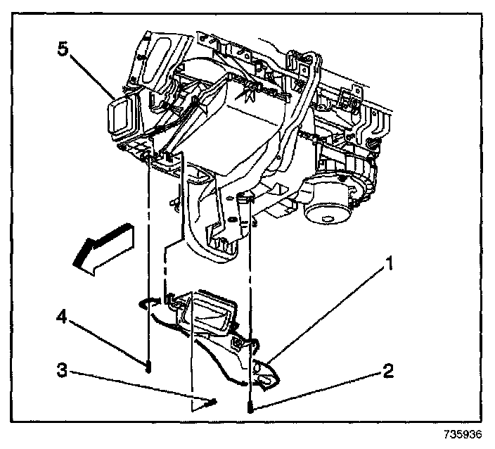 2. Install the floor air outlet duct retaining screws (2, 3, 4).