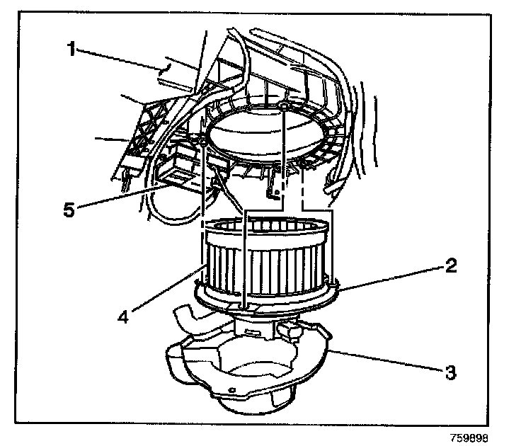 6. Remove the blower motor (2).