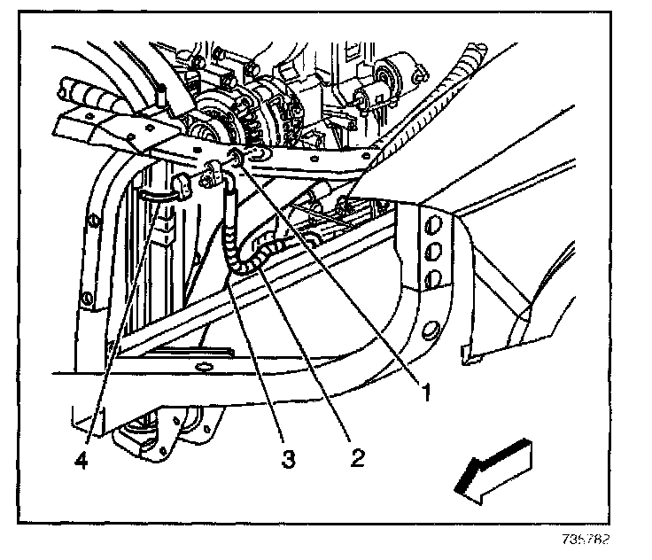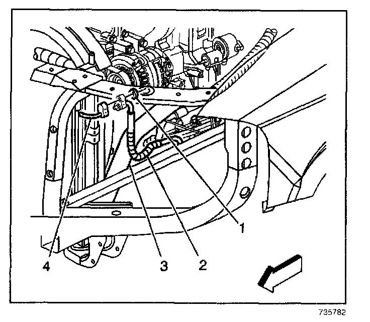 4. Remove the compressor discharge hose (2) from the condenser (4).