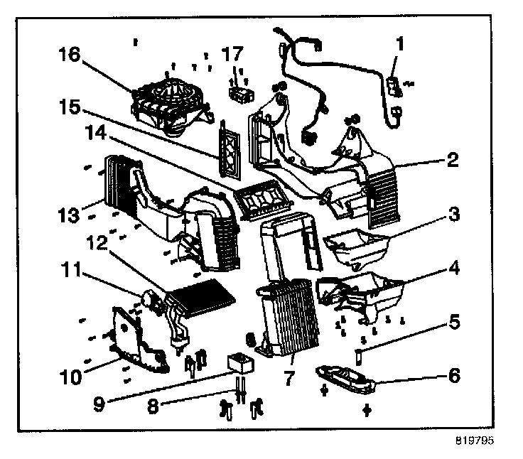 13. Separate the HVAC module-auxiliary case halves (2,13).
