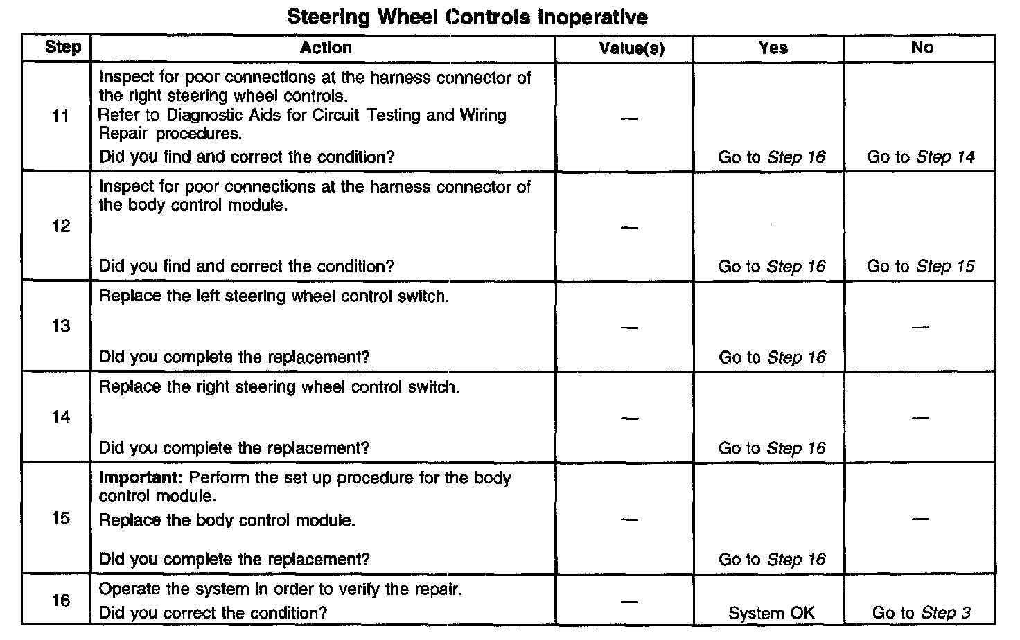 Steering Wheel Controls Inoperative