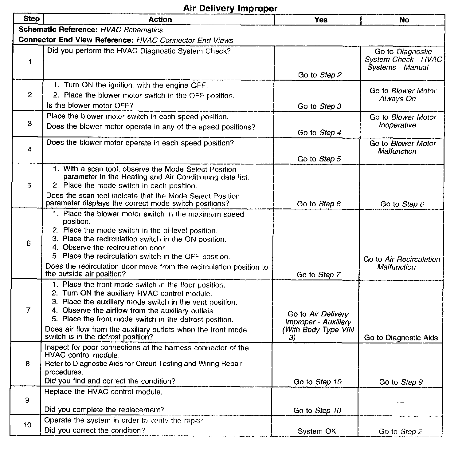 ^ If the scan tool indicates that the Door Actual parameter is 5-10 counts from the Commanded Door parameter, then perform the recalibration procedure for the HVAC door actuators. Refer to Re-Calibrating Actuators (Primary) or Re-Calibrating Actuators (Auxiliary HVAC). Programming and Relearning Programming and Relearning