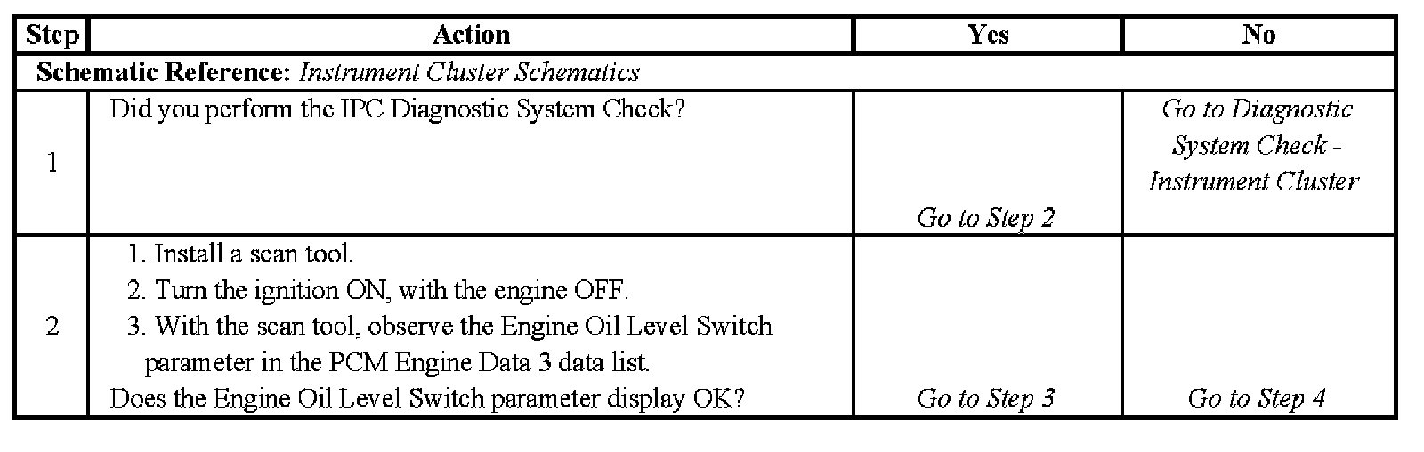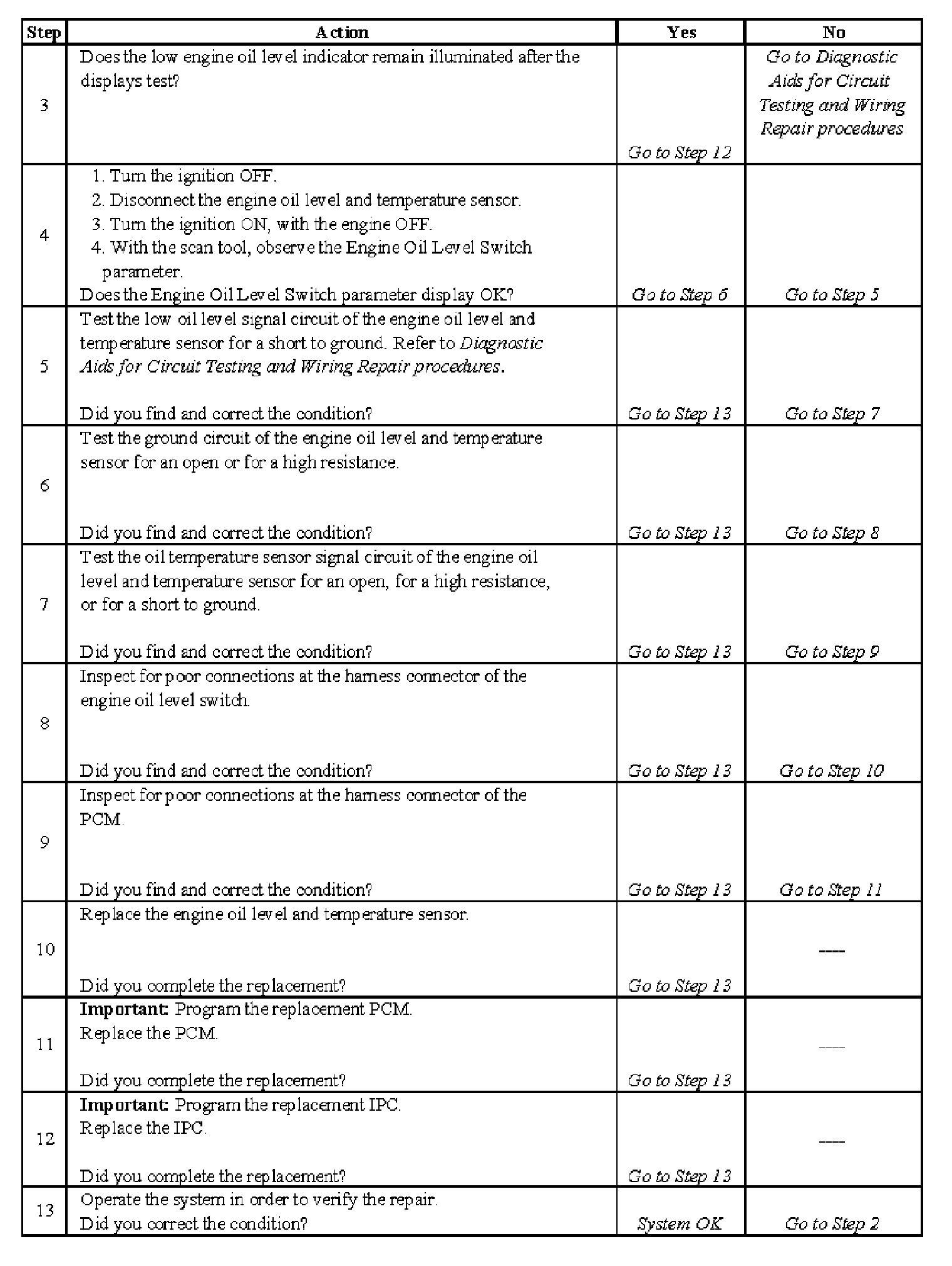 Low Engine Oil Level Indicator Always On - Steps 3-13: