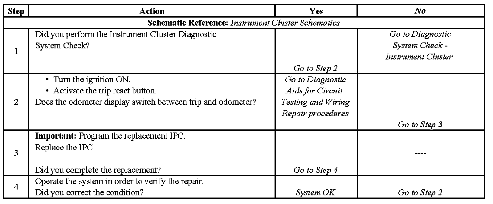Odometer Trip/Reset Switch Inoperative - Steps 1-4: