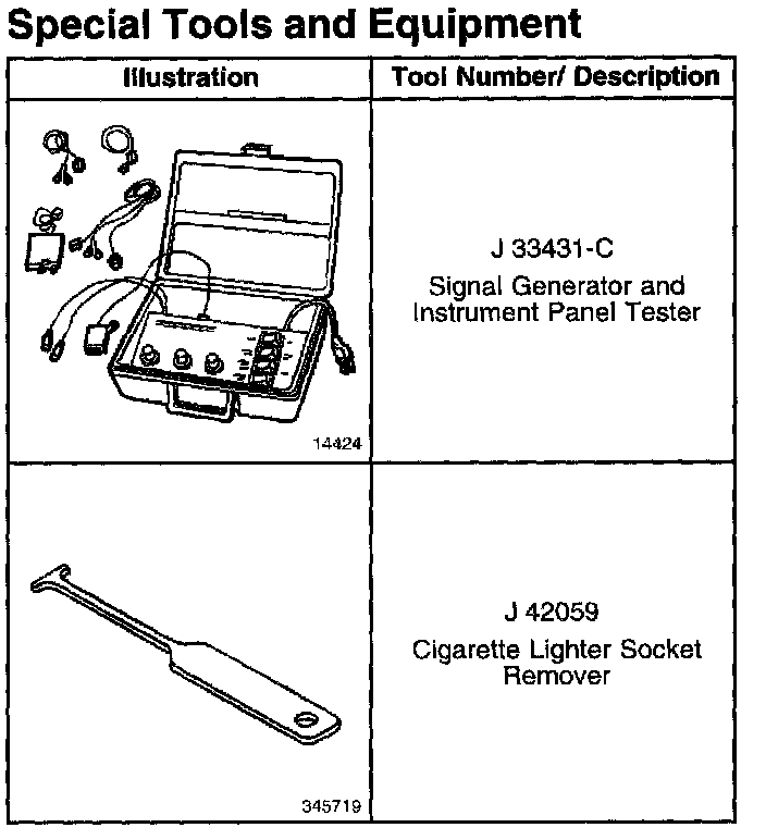 Instrument Panel, Gauges and Warning Indicators: Tools and Equipment